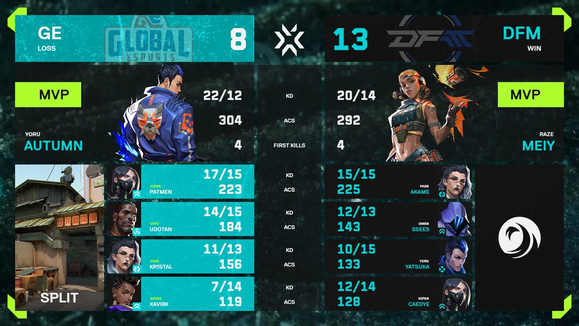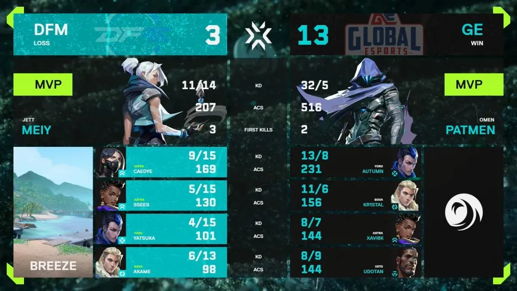 2026年2月1日、VCT Pacific 2026 Kickoff Day 8 第1試合が行われ、DetonatioN FocusMe(以下、DFM)がGlobal Esports(以下、GE)と対戦し、マップカウント2-1で勝利しました。