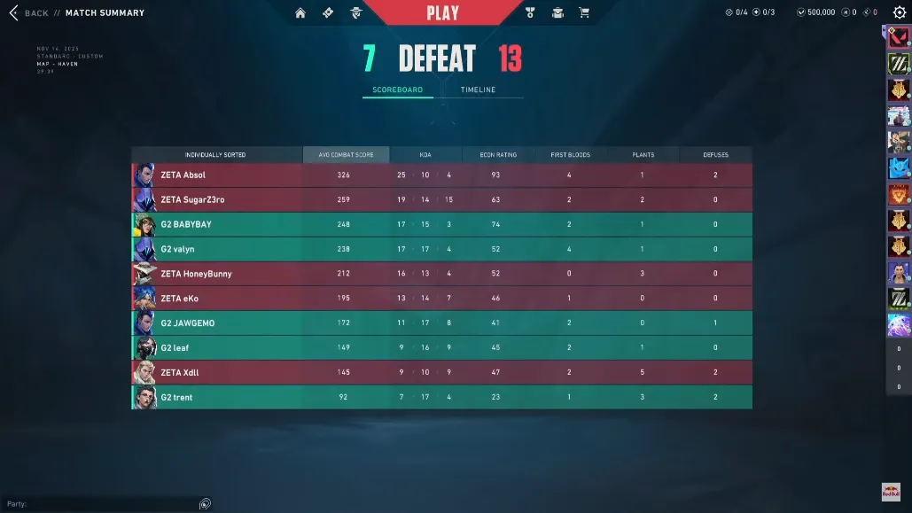 その後も13ラウンド目をしっかりと取り切り、ZETAがG2に13-7で勝利しました。