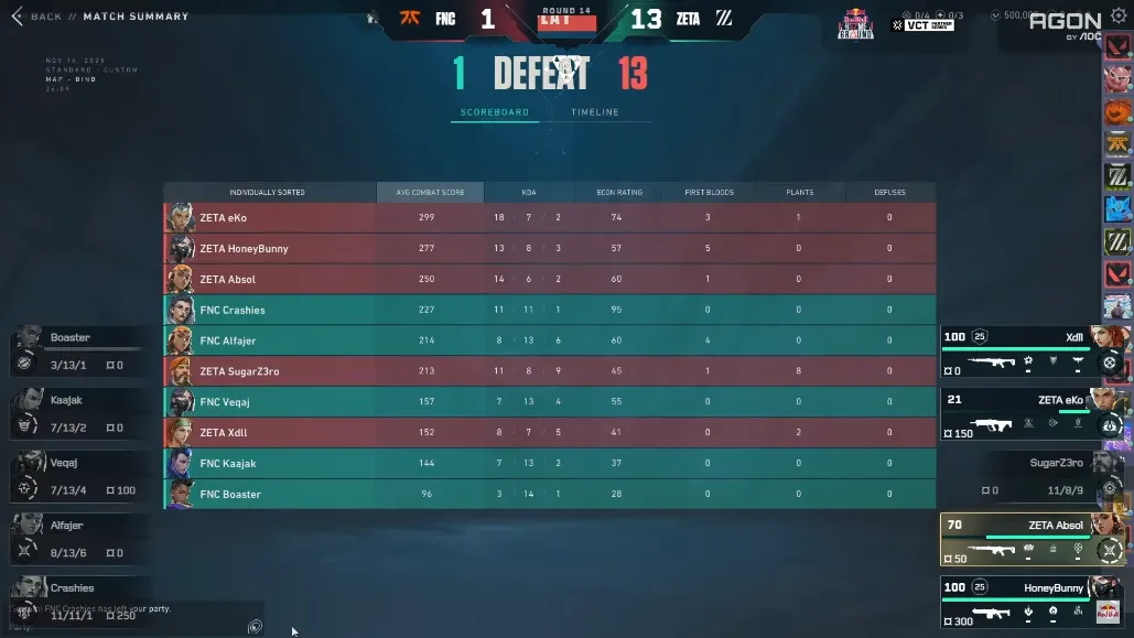 両チームが3マップずつBANした後に残ったバインドでは、ZETAがアタッカー側で開始しました。