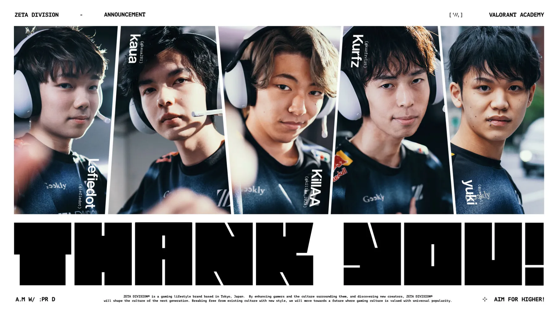 9/30日、ZETA DIVISIONのVALORANT ACADEMY部門から、kaua, KillAA, Kurfz, Lefiedot, yukiの5名が脱退することが発表されました。