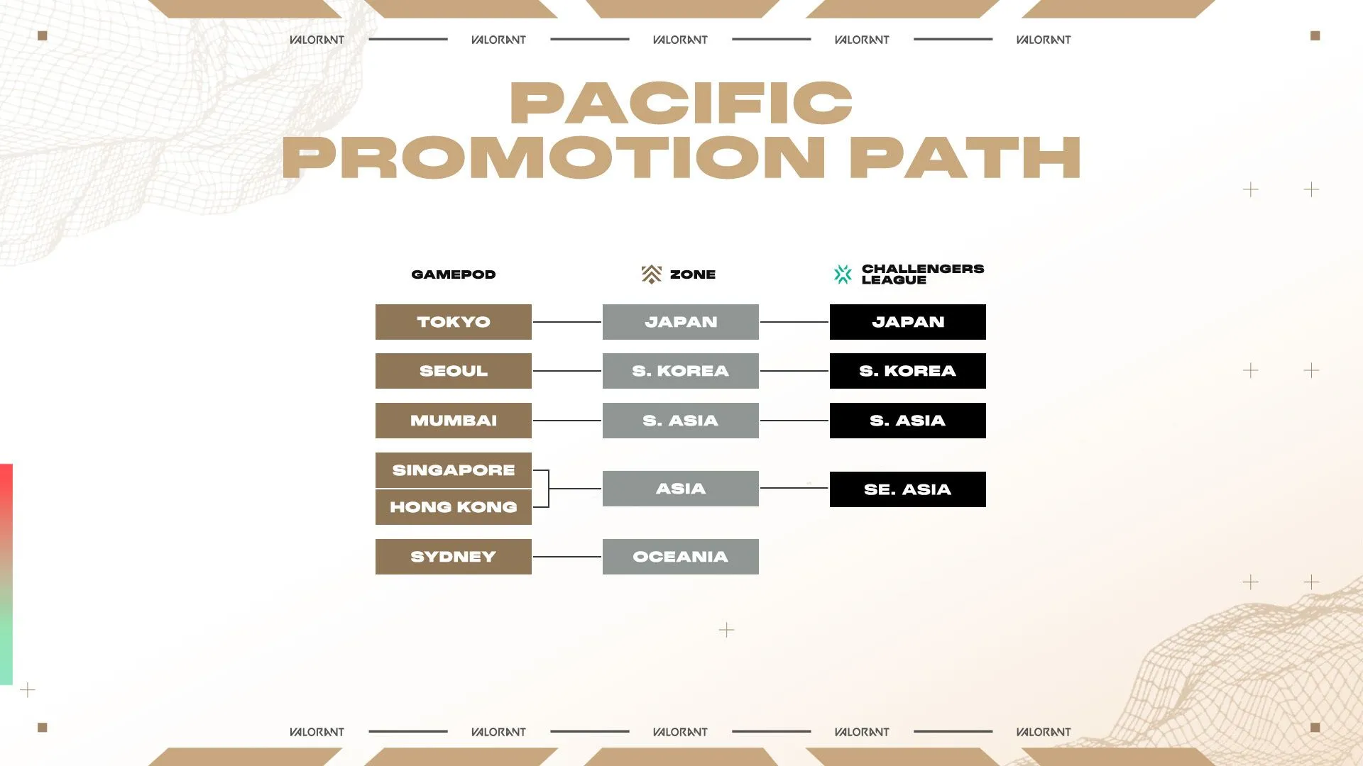 VCT Pacificでは次の地域の各1位チームに直接出場権が与えられます。