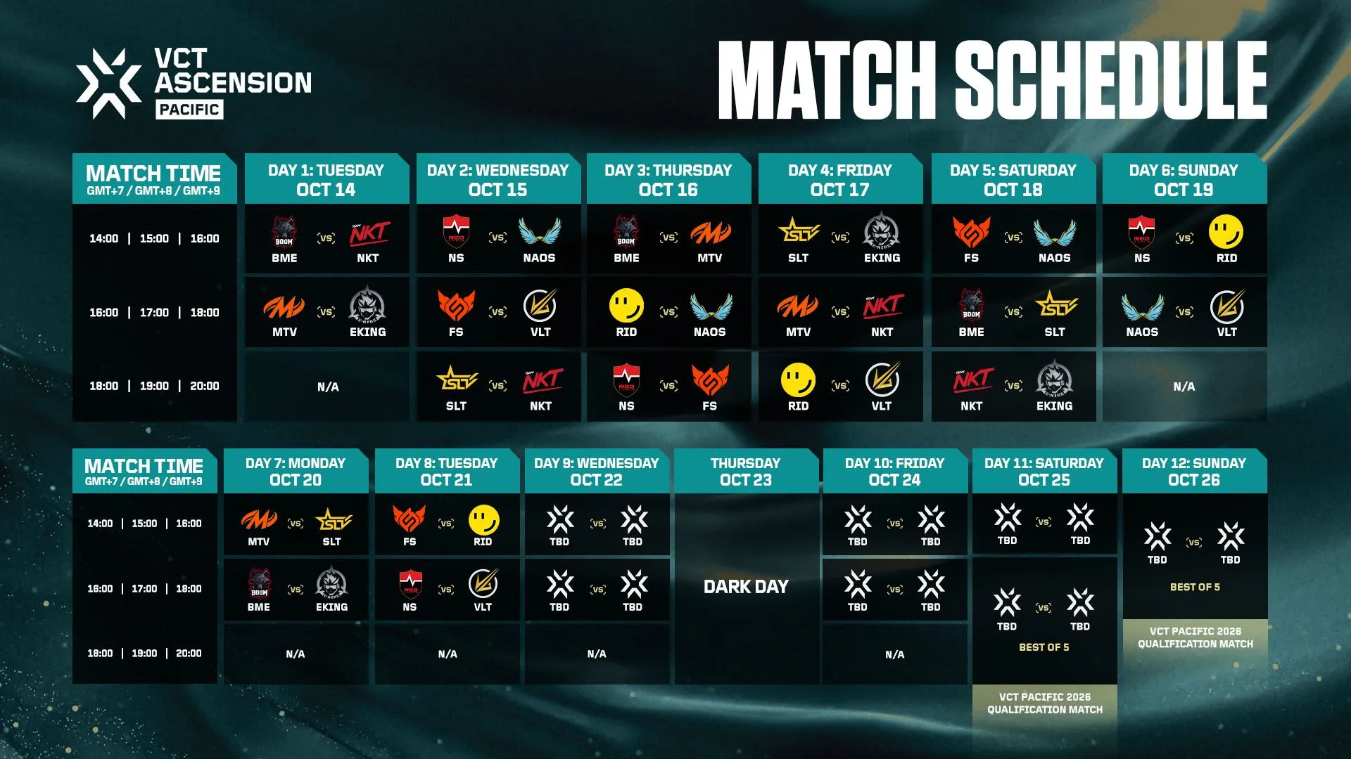 2025年10月14日より、2026年のVCT Pacific出場権をかけた戦い、VCT Ascension Pacificがタイ、バンコクにて始まります。