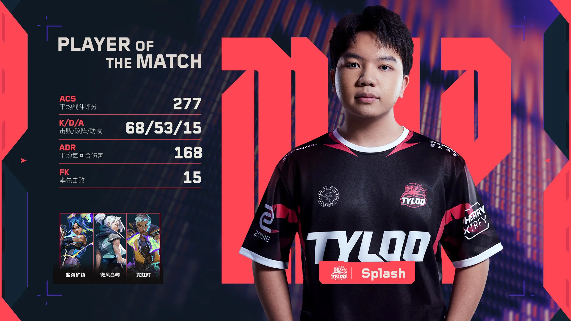 TYLは2デュエリストを主軸に戦っており、splashはネオンやジェットなど真っ先にエントリーするデュエリストでありながらこの数値は驚異的です。