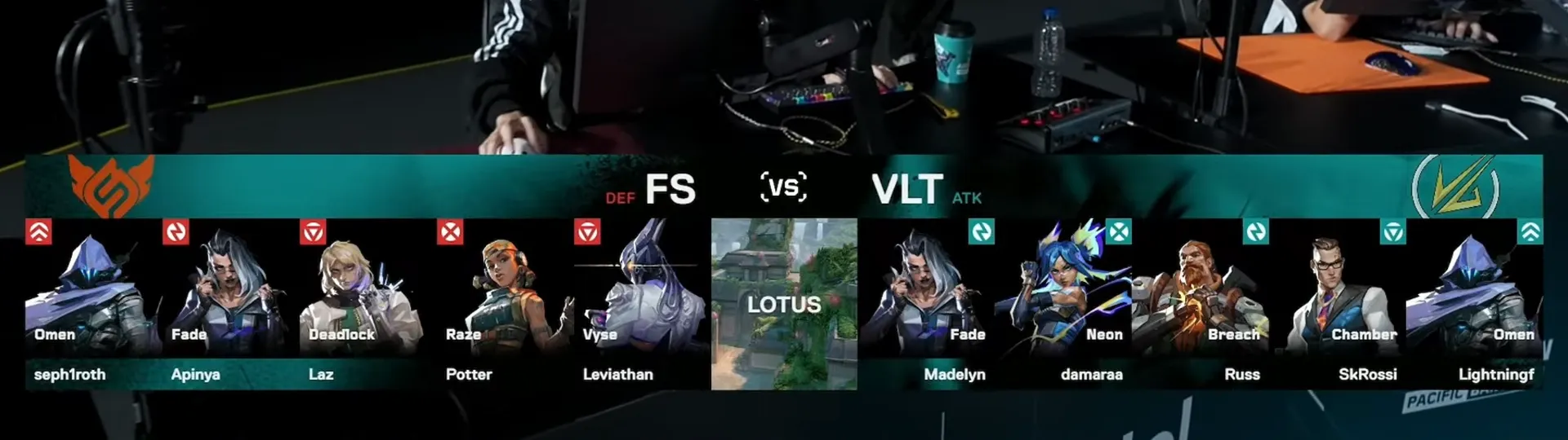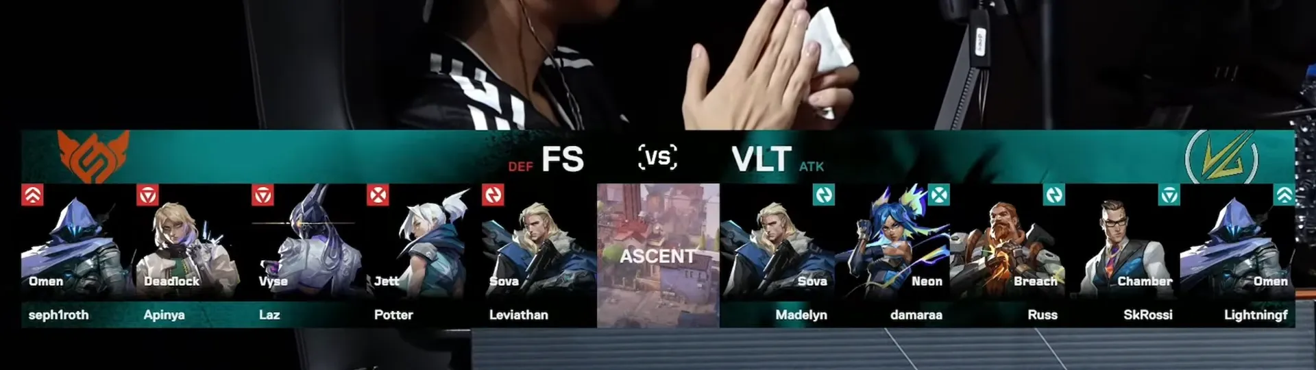 アセントでは、FULL SENSE側はデッドロックとヴァイスの2センチネル、Velocity Gaming側はブリーチ、ネオン、チェンバーの採用と、両チームが従来のメタから外れた構成を見せました。