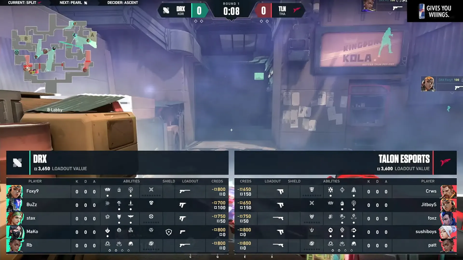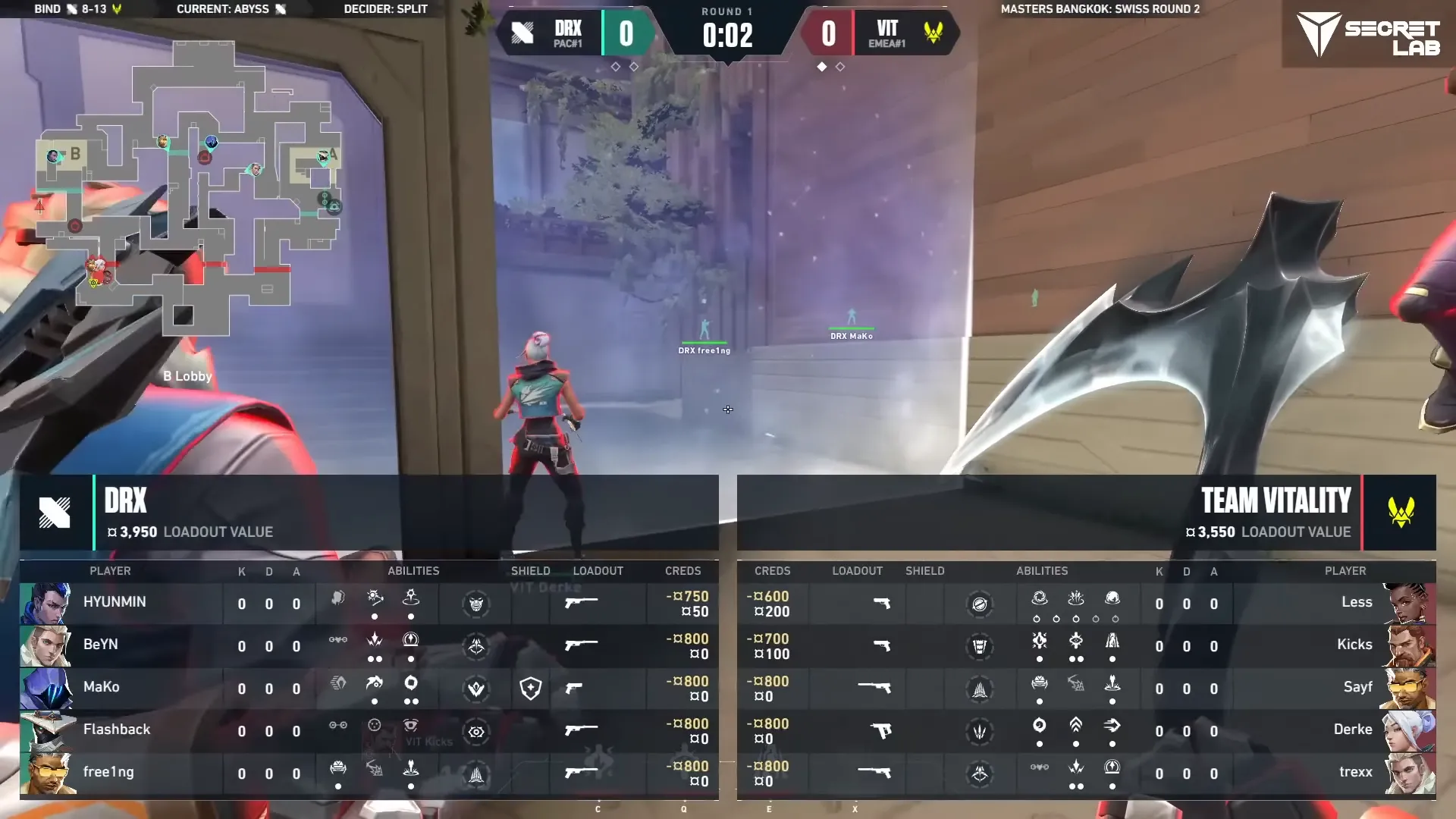 そう、DRXです。2023年のVCT LOCK//INにて2回、この構成を使っています。しかもそのうち1回はBBL Esportsが相手、もしかしたらこの時の記憶がフラッシュバックし、この2年後に3イニシエーター構成を使ったのかもしれません・・・。