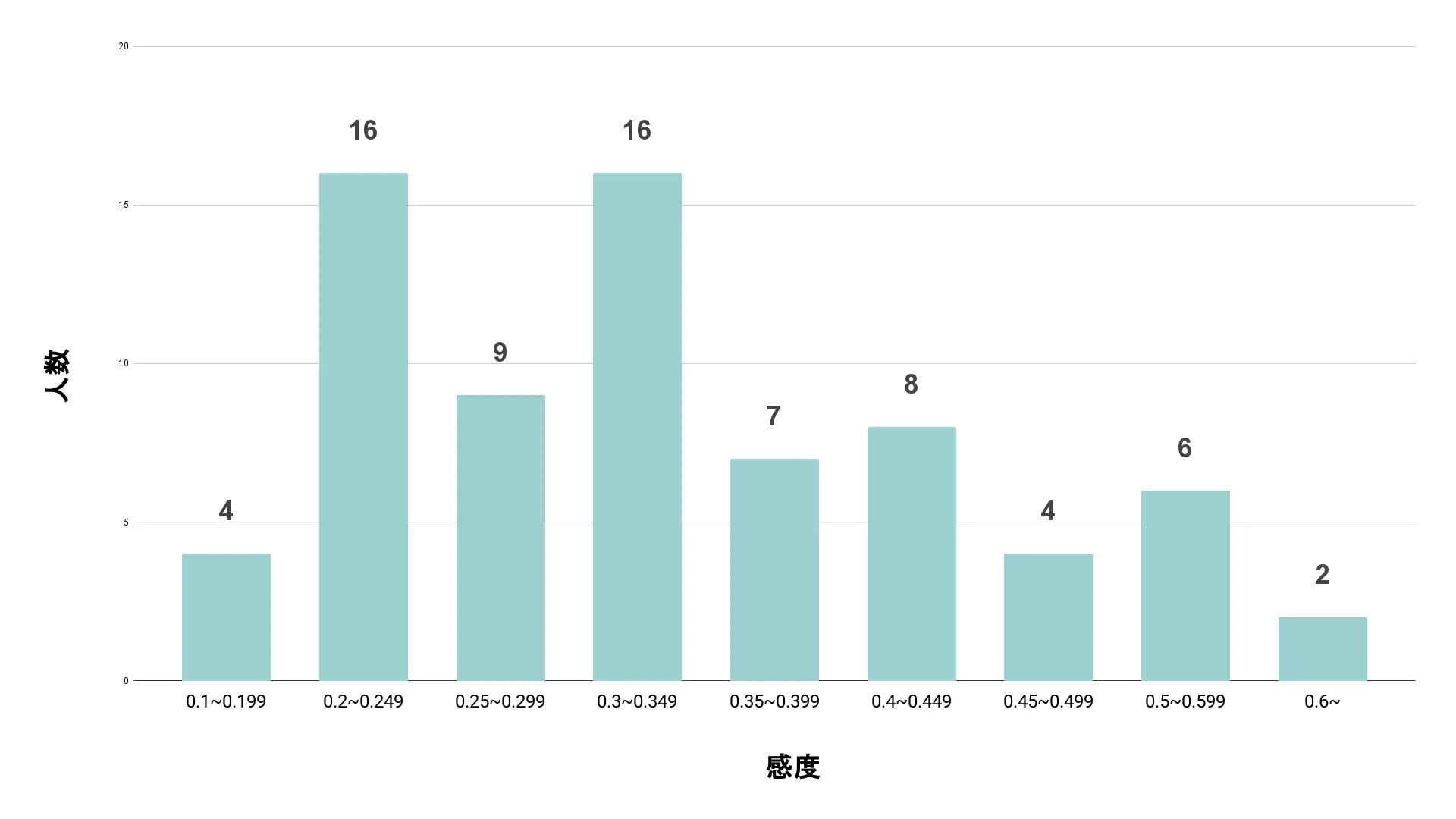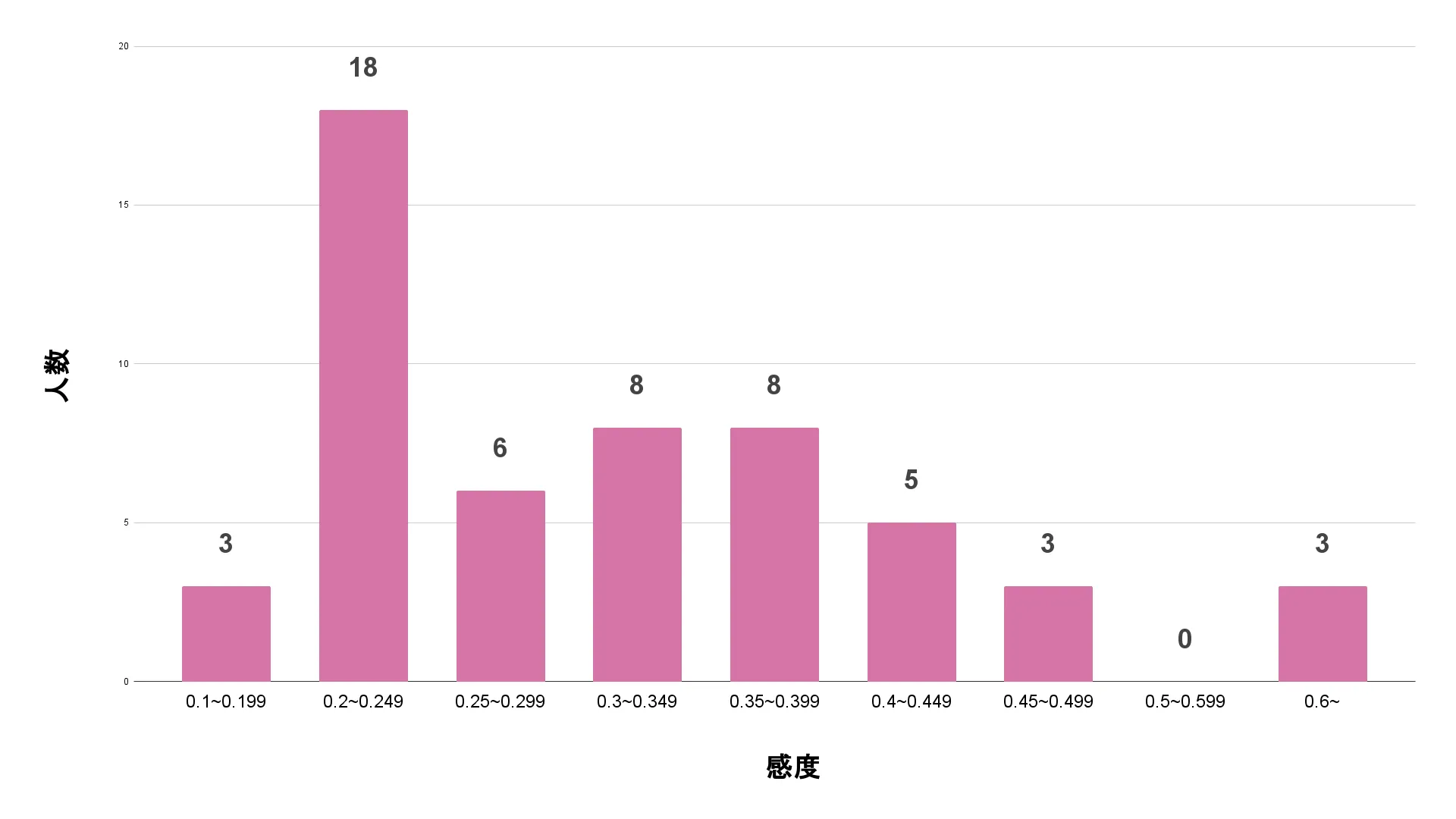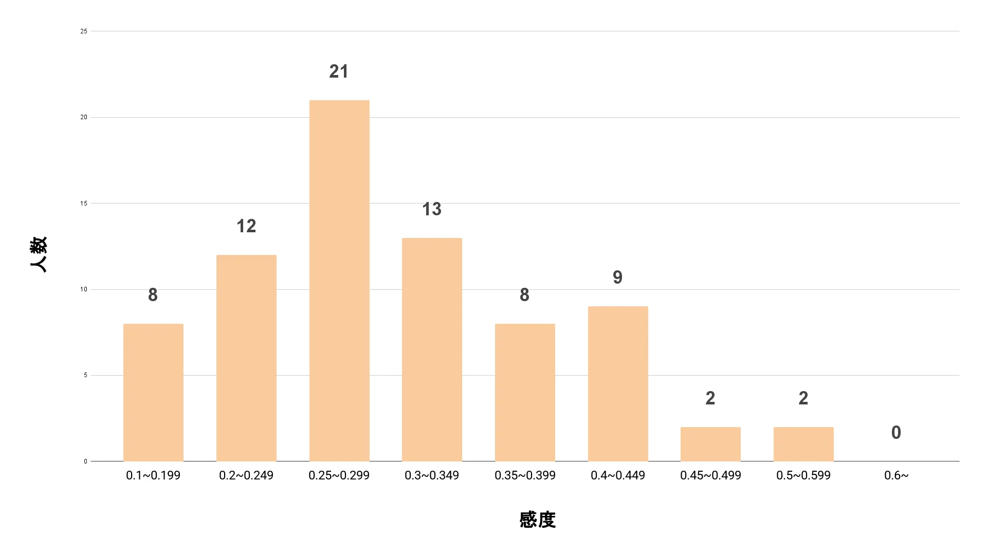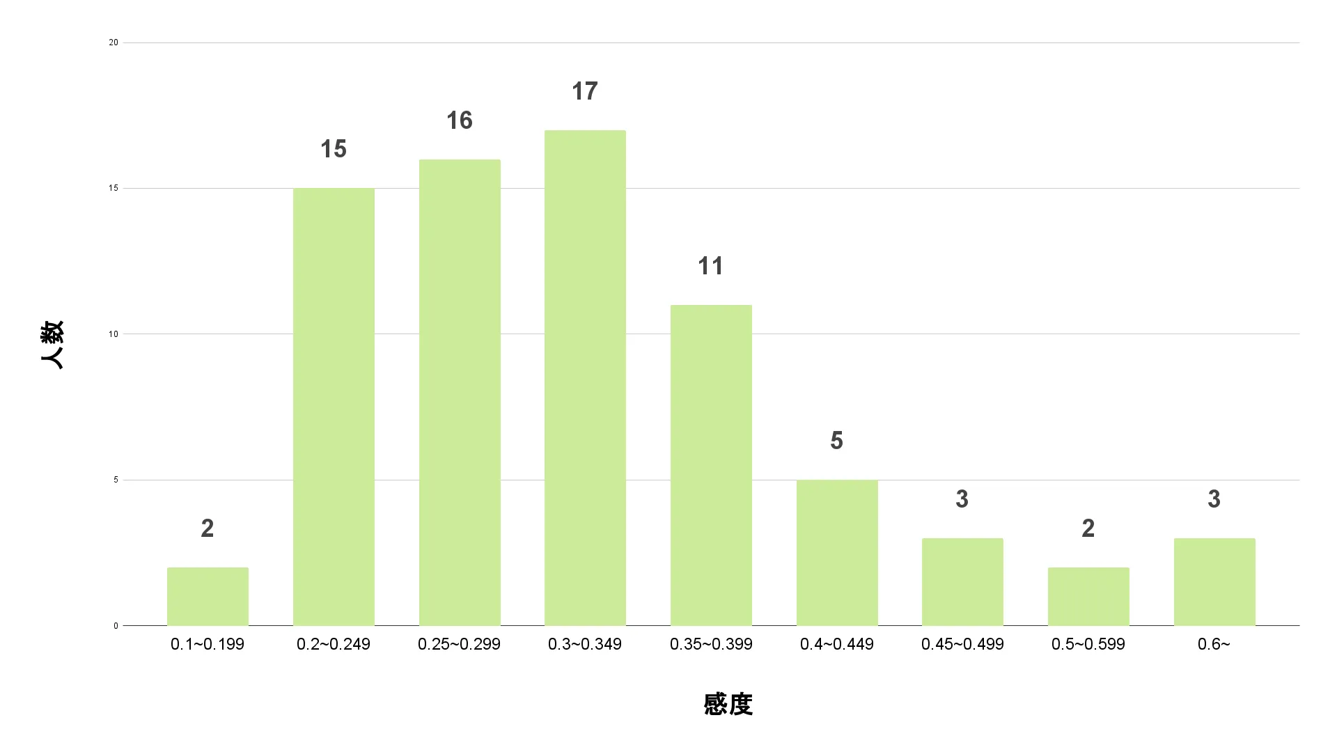 今回集計したデータの中央値は0.3、平均値は0.315。全体的に見れば、0.3付近が最も標準的な感度と言えるでしょう。